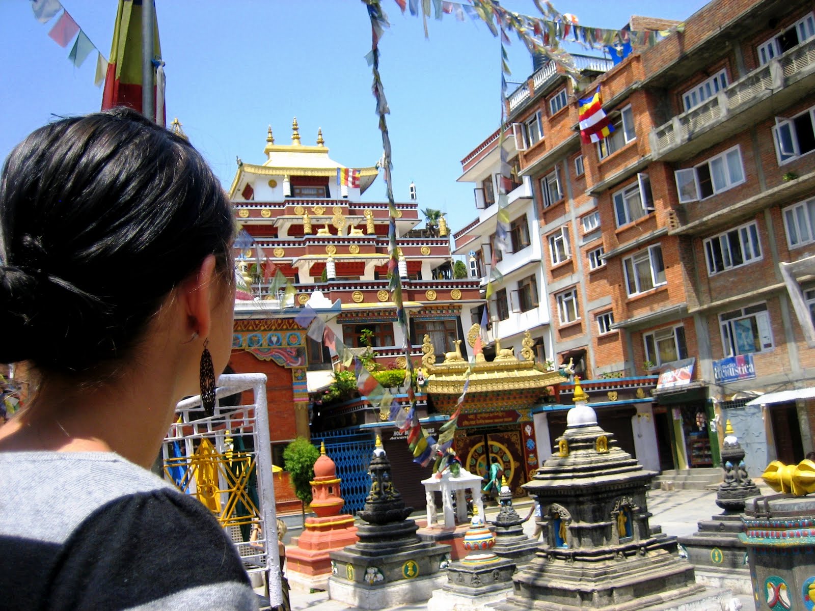 We arrived in Kathmandu, Nepal on a beautiful May morning after a short flight from Delhi, India. We hired a car to take us to our guesthouse which was located in the very dense and busy section of the city called “Thamel.” This part of town has numerous streets, alleyways, courtyards, etc, etc. Driving into the city we were both glued to the car windows and we couldn’t wait to start exploring. Immediately after we got our room we hit the streets to explore. Kathmandu is like no place on earth and is actually quite difficult to describe. The streets are extremely narrow and there are hundreds of motorcycles cruising by you at all times. This mixed with the colorful architecture, millions of people, etc makes for a very exciting experience just walking around town. There are very few large main streets which can make it extremely easy to get lost. On this first morning Lindsay and I knew the general direction we were heading (towards Durbar Square) but were excited to “get lost” on the way. After only a few minutes of wandering we passed an alleyway that lead into an extremely colorful courtyard. It was a little hard to tell exactly what this was at first so we decided to explore. As we got closer we realized that this little alleyway lead into a courtyard that had a beautiful Buddhist temple called a “Stupa.” These are very colorful temples generally consisting of a central large white structure with a central tower. This is generally painted with two colorful eyes and is adorned with a gold top, colorful flags, etc. In addition, there are numerous smaller temples that surround the main temple full of shrines, statues, etc. To top it all off there are strings of colorful “prayer flags” that run from the very top of the temple to nearby buildings, etc. Needless to say these stupa temples are extremely colorful and beautiful. This was a large Stupa in a small courtyard so Lindsay and I were almost overwhelmed by the sight. It is truly like nothing we had ever seen. We spent an hour just wandering around the courtyard trying to take it all in. It was a beautiful day and the bright blue sky was the perfect backdrop to the colorful prayer flags flying overhead. We eventually continued on our way but will never forget stumbling on that beautiful Stupa temple in the heart of Kathmandu. It was the perfect introduction to an amazing country and we were so lucky to experience it on our first morning.